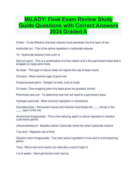 Prepare confidently for your cosmetology exams with this comprehensive Milady Cosmetology review and answer guide. Featuring detailed explanations and practical questions, it's an essential resource for beauty school students seeking to master the curriculum and ace their professional licensing exams.