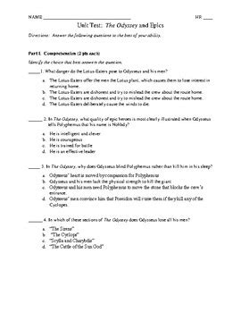 odyssey unit test answersthe odyssey exam solutionshomer odyssey study guideodyssey review questionsgreek mythology test help